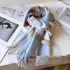 100% Reine Wolle Blauer Karoschal - Warmer, Vielseitiger Halswärmer für den Winter