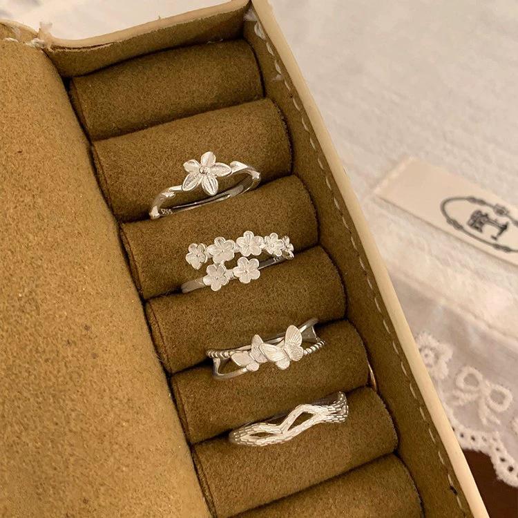 Exquisiter Damen Schmetterling & Blume Offener Ring - Mori Stil, Verstellbare Trendige Zeigefinger Dekoration