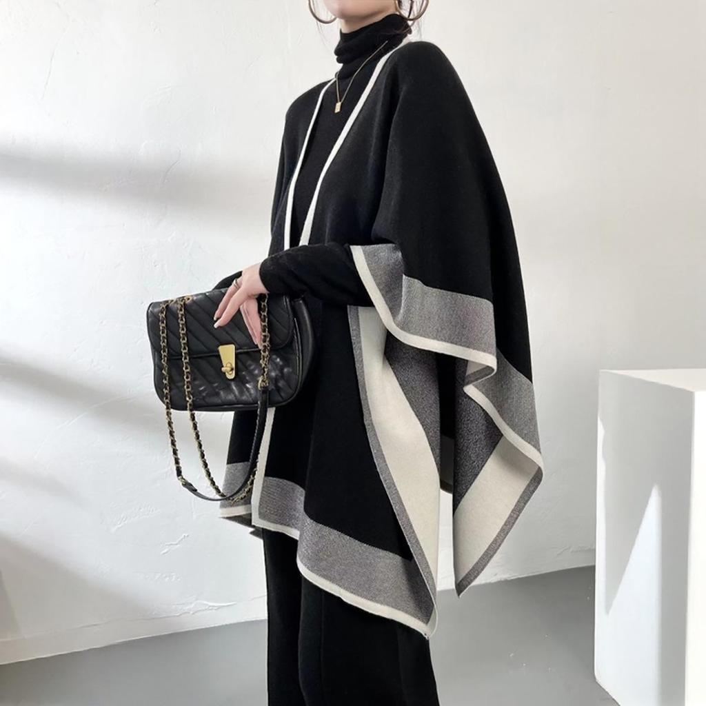 Hochwertiger gestrickter Schalmantel für Damen: Warme Herbst-/Winter-Colorblock-Oberbekleidung