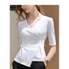 Dieses stilvolle T-Shirt ist aus hochwertiger Baumwolle gefertigt und bietet sowohl Komfort als auch Eleganz.. Entworfen mit einem asymmetrischen Schnitt, verfügt es über einen schmeichelhaften V-Ausschnitt, der das Dekolleté betont.. Das taillenbetonte Design akzentuiert Ihre Silhouette und sorgt für einen schlankmachenden Effekt.. Seine halblangen Ärmel verleihen ihm eine moderne Note und machen ihn zu einem vielseitigen Stück für jede Garderobe.. Perfekt für zwanglose Ausflüge oder festlichere Anlässe, dieses T-Shirt vereint mühelos Stil und Komfort.