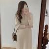 Korean Style V-Neck Knit Dress - Flattering, Mid-Length, Over-the-Knee, Autumn/Winter Women's Fashion