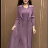 Damen Vielseitiges Übergröße A-Linien-Kleid mit Fake-Zweiteiler-Anzugkragen, Hoher Taille und Elastischem Taillen-Schlankheitsdesign für Frühling und Herbst
