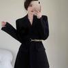 Damen High-End Französisches Schwarzes Herbst-Anzugkleid mit Gürtel - Taillenformender Langarm-Blazer.
