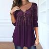 2025 Europäische & Amerikanische Übergröße Herbst Damen Print Knopf Langarm Oberteil T-Shirt