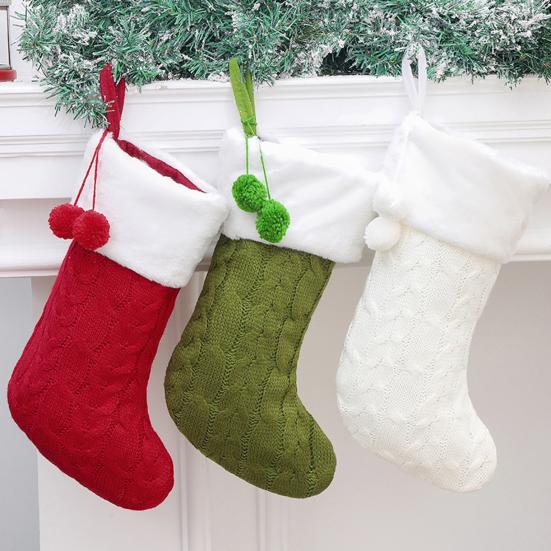 Weihnachtsstrümpfe 17 Zoll Groß Gestrickt Kamin Hängender Strumpf mit Kunstfell Weißer Umschlag für Weihnachtsfeiertags-Partydekoration