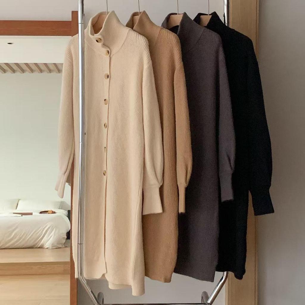 Strickjacke mit hohem Kragen und mittellanger Länge für Damen - 2025 Herbst/Winter Schlank machender Pullovermantel