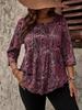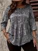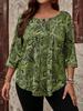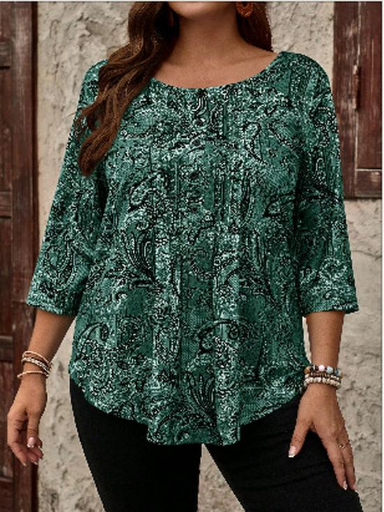 Übergröße Paisley-Print Langarm-Knopf-T-Shirt für Damen