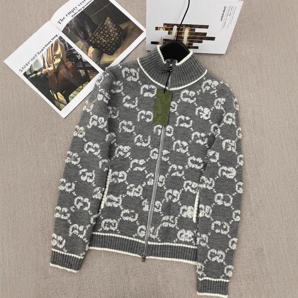 Entdecken Sie Eleganz und Wärme mit diesem bestickten Damen-Cardigan mit Stehkragen und praktischem Reißverschluss.. Gefertigt aus einer luxuriösen Wollmischung, verspricht dieser dicke Cardigan sowohl Komfort als auch Stil.. Die langen Ärmel bieten zusätzlichen Schutz und machen es perfekt für kühles Wetter.. Sein einzigartiges Design, hervorgehoben durch den distinguierten Doppel-G-Print, verleiht jedem Outfit einen Hauch von Raffinesse.. Ideal für diejenigen, die eine Mischung aus moderner Mode und zeitloser Eleganz suchen.