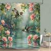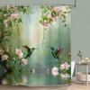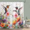 Wunderschöner Kolibri Blumen Duschvorhang Schmetterling Blume Botanischer Aquarelldruck Polyester Duschvorhang Badezimmerdekor