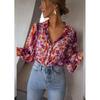 Lebhafte pinke und orangefarbene florale Chiffonbluse mit langen Ärmeln