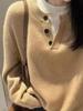 Herbst/Winter Damen 100% Wolle Koreanischer Locker Gestrickter Pullover - Weich, Vielseitig, Rundhals Figurformender Pullover