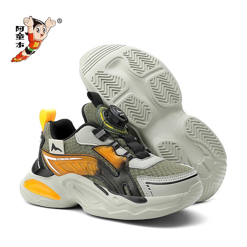 Boys Spring and Autumn mesh classmates Children's sports shoes Breathable running shoes Astro Boy waterproof and non-slip leather buttons