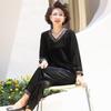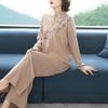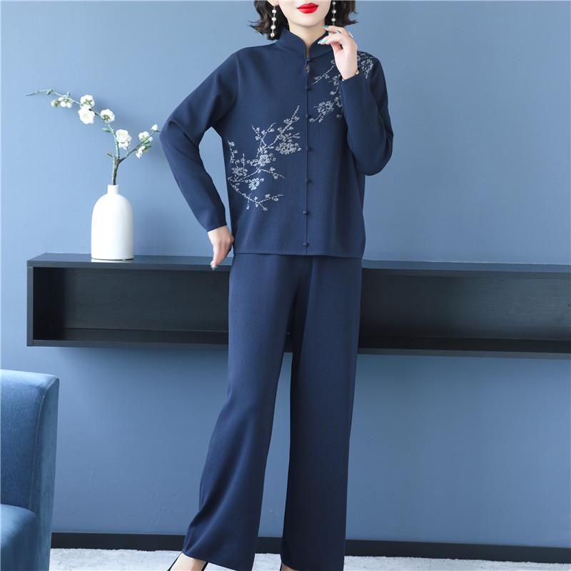 Erleben Sie außergewöhnlichen Komfort und Stil mit diesem lässigen Strick-Zweiteiler für Damen, perfekt für die anspruchsvolle Mutter mittleren Alters.. Dieses Ensemble besteht aus einem locker sitzenden Oberteil und Hosen mit weitem Bein, fachmännisch gefertigt aus einem weichen Polyestermaterial.. Das Set aus Wollmischpelz verleiht einen eleganten Touch, während die einzigartigen Patchwork- und Steppdekorationen einen modernen, modischen Flair verleihen.. Dieses zweiteilige Set ist ideal für einen entspannten, aber stilvollen Look und perfekt für jeden lässigen Ausflug.