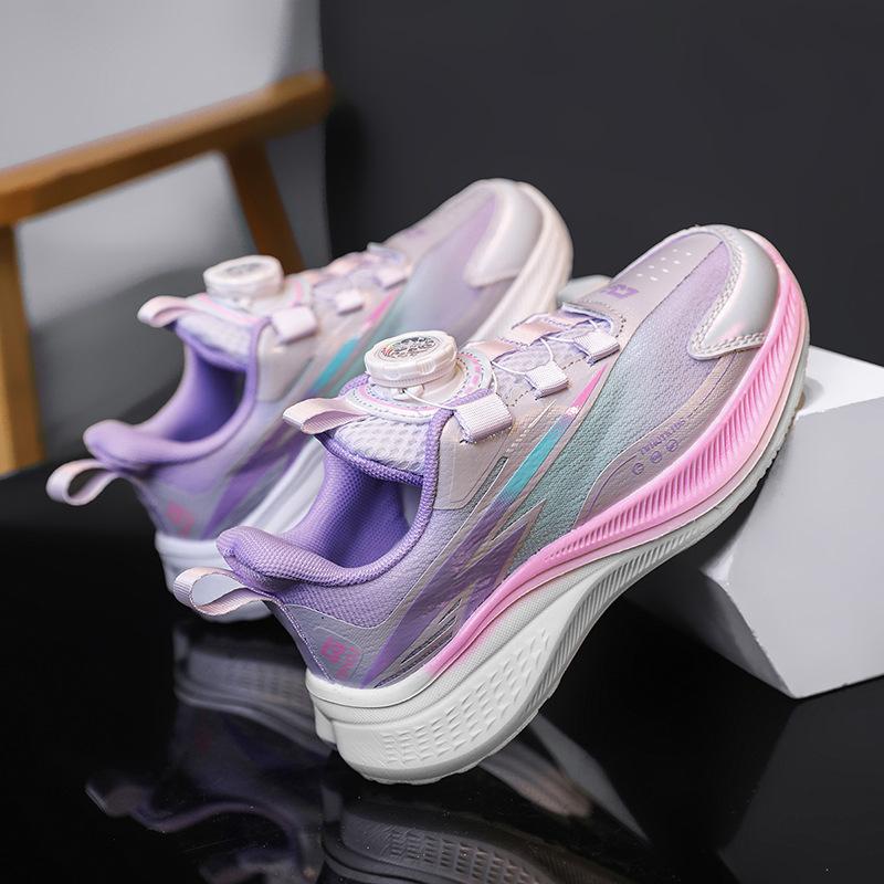 Girls 2025 fashion running shoes medium and older children's shoes running shoes rotating button sports shoes wear-resistant and lightweight