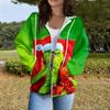 Damen Casual Mode Langarm Reißverschluss Bedrucktes Kapuzensweatshirt