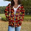 Damen Casual Mode Langarm Reißverschluss Bedrucktes Kapuzensweatshirt