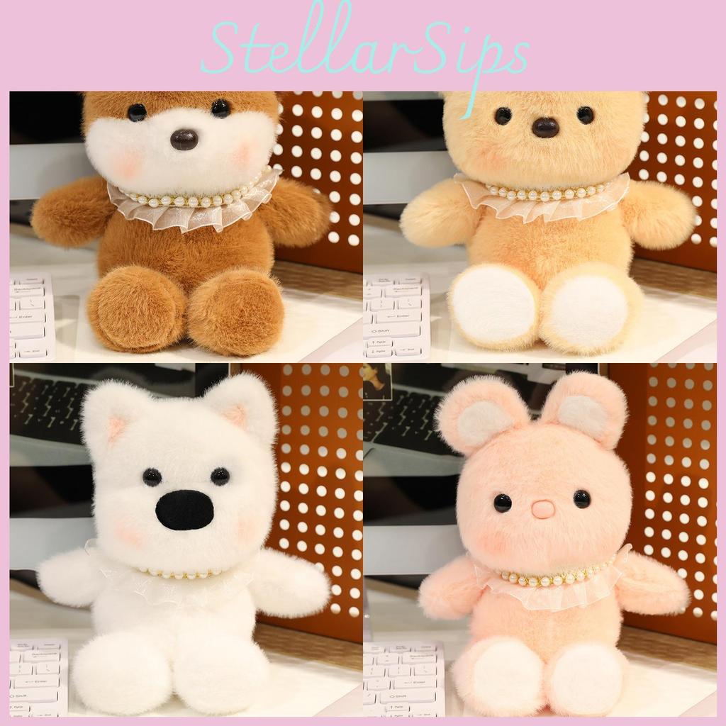 This plush bear doll features ultra-soft short pile fabric and is filled with durable PP cotton, measuring 25cm. Its detailed animal design, including a fox and West Highland style, makes it ideal for kids' room decor or gifting. Easy to clean, wipe with a damp cloth for maintenance.