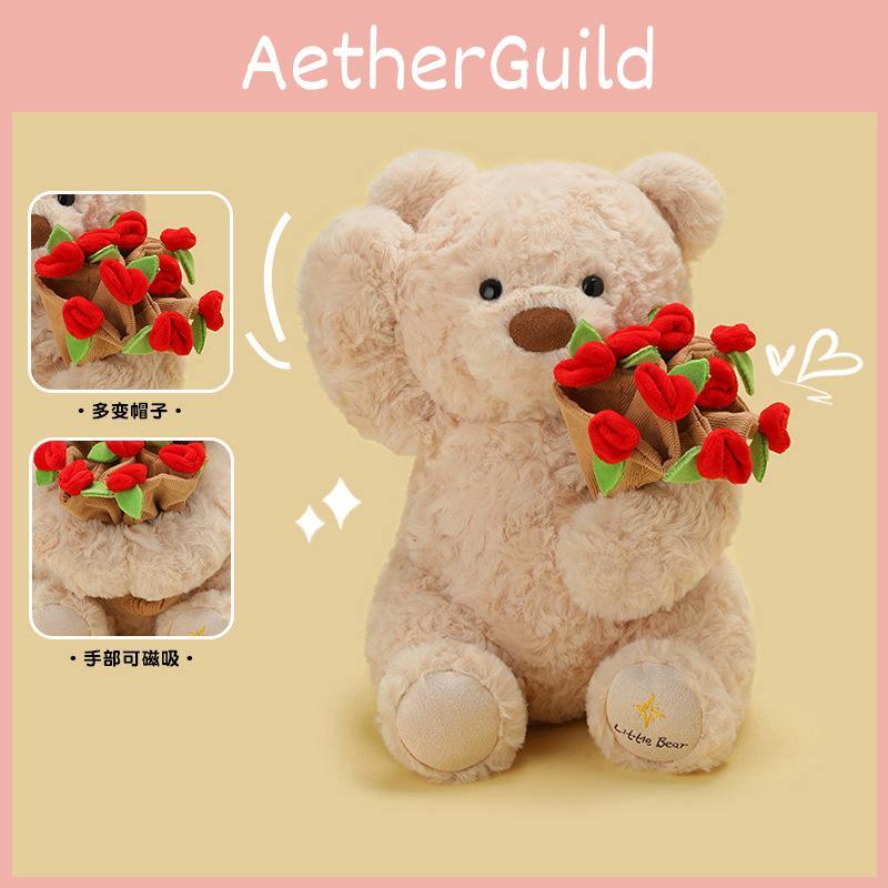 Der magnetische Flüsterbär mit Rosenmütze ist ein bezauberndes Plüschtier, das Freude bereitet und inspiriert.. Dieser Bär ist aus weichem Kurzflorstoff gefertigt und mit hochwertiger PP-Baumwolle gefüllt. Er bietet eine kuschelige Textur und ist robust verarbeitet.. Erhältlich in zwei Größen (25 cm und 38 cm) erfüllt es unterschiedliche Vorlieben, während der magnetische Rosenhut ein einzigartiges, interaktives Element hinzufügt.. Das realistische Design des Bären, erhältlich in Dunkelbraun- und Hellbrauntönen, erhöht seine Attraktivität als durchdachtes Geschenk oder Dekorationsobjekt.