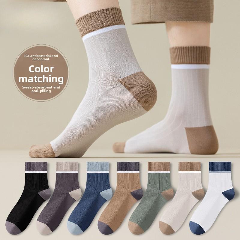 Men's Autumn and Winter Color-matched Mid-calf Socks, Casual Long Socks, Breathable, Anti-slip and Sweat-absorbing Cotton Socks