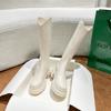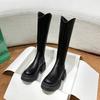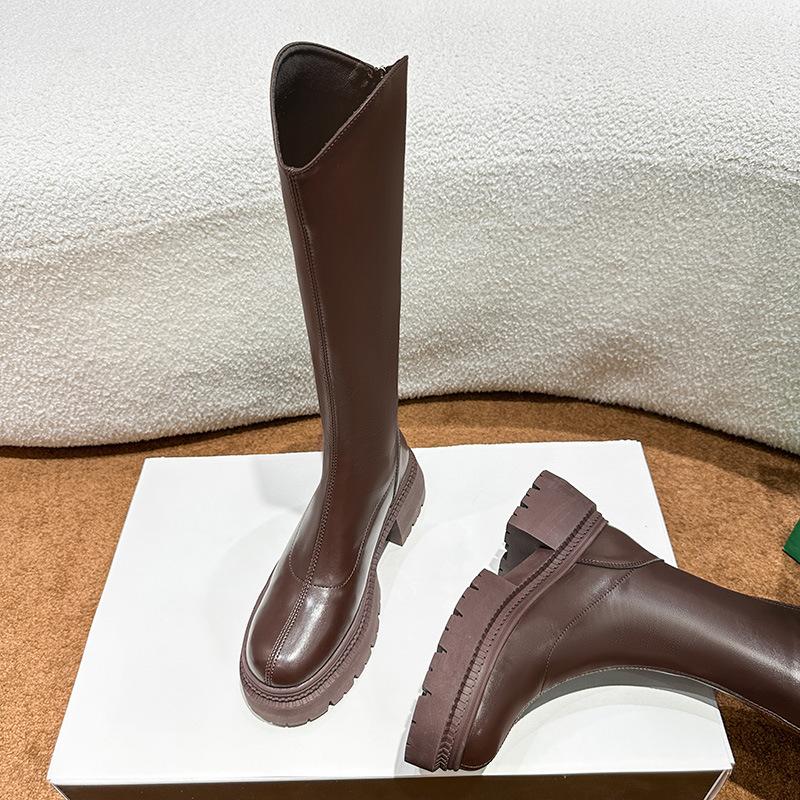 Hohe Stiefel für Damen, braune dicksohlige Ritterstiefel für Damen, Herbst und Winter, aber Reißverschlussstiefel hinter dem Knie, schlanke Temperamentsstiefel für Damen