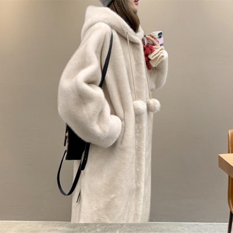 Damen Hexenmantel mit Kapuze - Dickes Kunstnerzleder & Fell, Slim Fit, Herbst/Winter-Edition