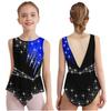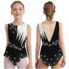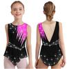 Mädchen Wettkampf Turnanzug Ärmellos Glänzend Strasssteine Kontrastfarbe für Rhythmische Sportgymnastik