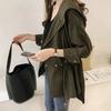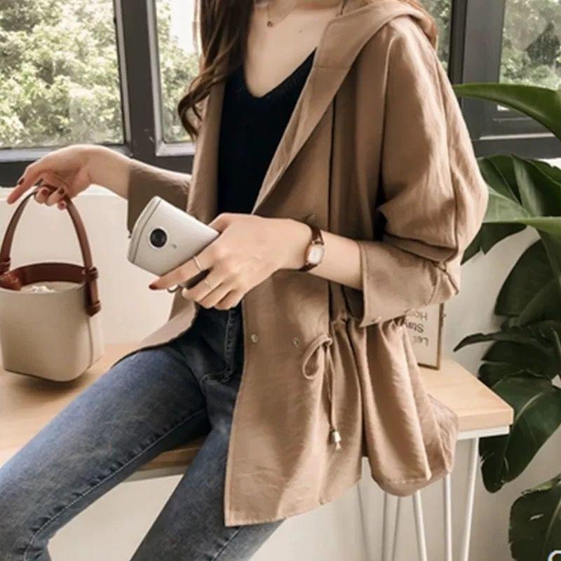 Damen Neuer Stil Gespleißt Locker Kapuze Knöpfe Modisch Einfarbig Mittellang Lässig Langarm Strickjacke Jacke