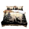 Schwarzbär Hirsch Bettbezug 3-teiliges Set Waldtiere Elch Elch Bettwäscheset Weiche Mikrofaser Bettdeckenbezug mit 2 Kissenbezügen