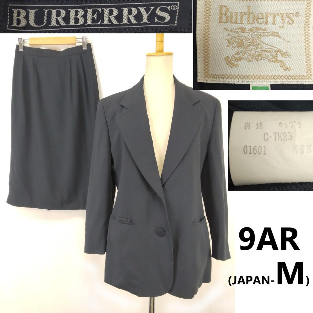 90s Vintage Burberrys skirt suit women 9AR M olive gray two-piece(USED)