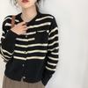Damen locker gestreifter Strickcardigan - Koreanischer Stil, Neu für 2024, Perfekt für Frühling & Herbst, Dick gestrickte Oberbekleidung