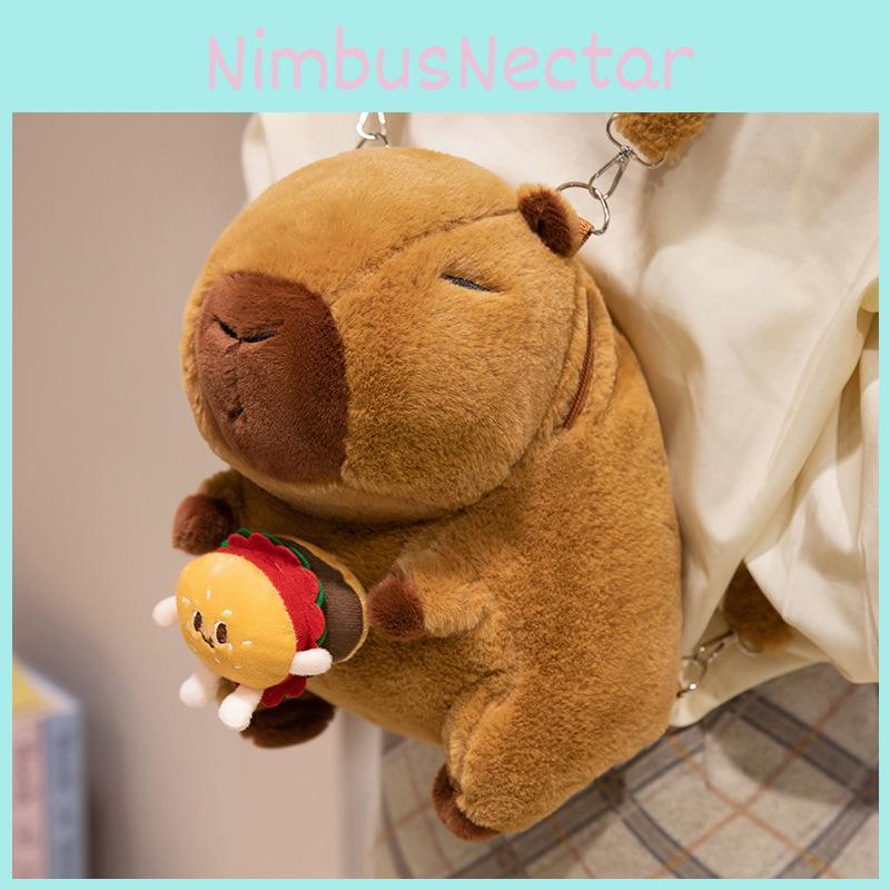This plush kid backpack features a playful capybara design.The adjustable straps enable a customized fit, ensuring comfort during extended wear.Designed for school or outings, this backpack enhances organization with a spacious main compartment suitable for books, snacks, and small accessories. To maintain its plush appearance, spot clean with a damp cloth and air dry. Its vibrant orange, hamburger, French fry, and sunflower color options make it a cheerful addition to any child's accessories collection.