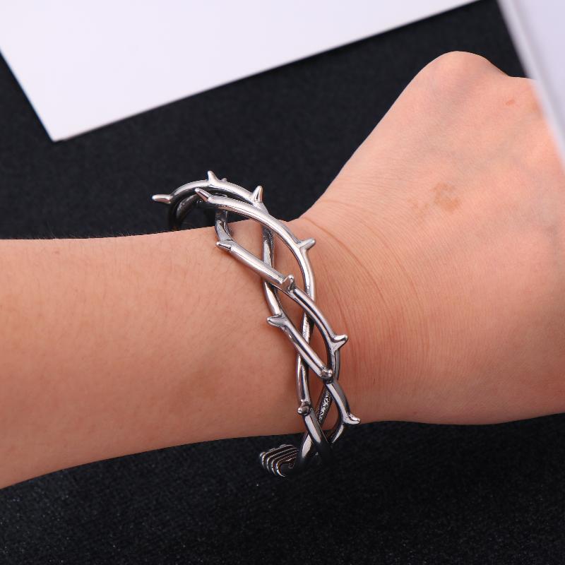 Gothic Dornen Armreif Für Unisex Punk Stacheldraht Armspange Edelstahl Gedreht Schmuck Geschenk