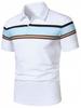 Wir stellen eine stilvolle und zeitgemäße Ergänzung für Ihre Garderobe vor, das Herren Colorblock Kurzarm-Poloshirt.. Dieses modische Stück zeichnet sich durch ein auffälliges Streifenmuster aus, das sein modernes Color-Blocking-Design betont.. Hergestellt aus einem hochwertigen Polyestermaterial, gewährleistet es sowohl Komfort als auch Langlebigkeit für den täglichen Gebrauch.. Der Umlegekragen verleiht einen Hauch von Eleganz und Raffinesse und macht ihn für verschiedene Anlässe geeignet.. Ideal für diejenigen, die eine Mischung aus europäischen und amerikanischen Modetrends suchen, ist dieses Poloshirt perfekt, um Ihr lässiges Ensemble aufzuwerten.