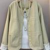 Unifarbener Rundhals-Knopf-Cardigan mit Spitzeneinsatz, locker, langärmelig, Jacke, Damenbekleidung, Jacken, Oberteil