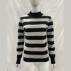 Europäischer und amerikanischer lässiger Pendel-Kontrast-Streifen-Dünnstrickpullover mit langen Ärmeln für Damen