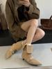 2025 neue Retro Slim Vielseitige West Absatz Spitz Westernstiefel Damen Wildleder Kurze Stiefel Mode Knopfstiefel Damen