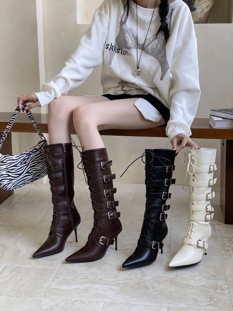 2025 Herbst und Winter neu spitz zulaufend dünner Absatz hoher Absatz Temperament dünn französische Mode sexy Schönheit weibliche Internet-Berühmtheit Stiefel