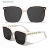 Women's High-End Large Square Frame Sunglasses with UV Protection and Stylish Chain Design