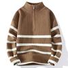 Herren Schwarz-Weiß Gestreifter Pullover mit halbem Reißverschluss und Stehkragen für Frühling & Herbst.