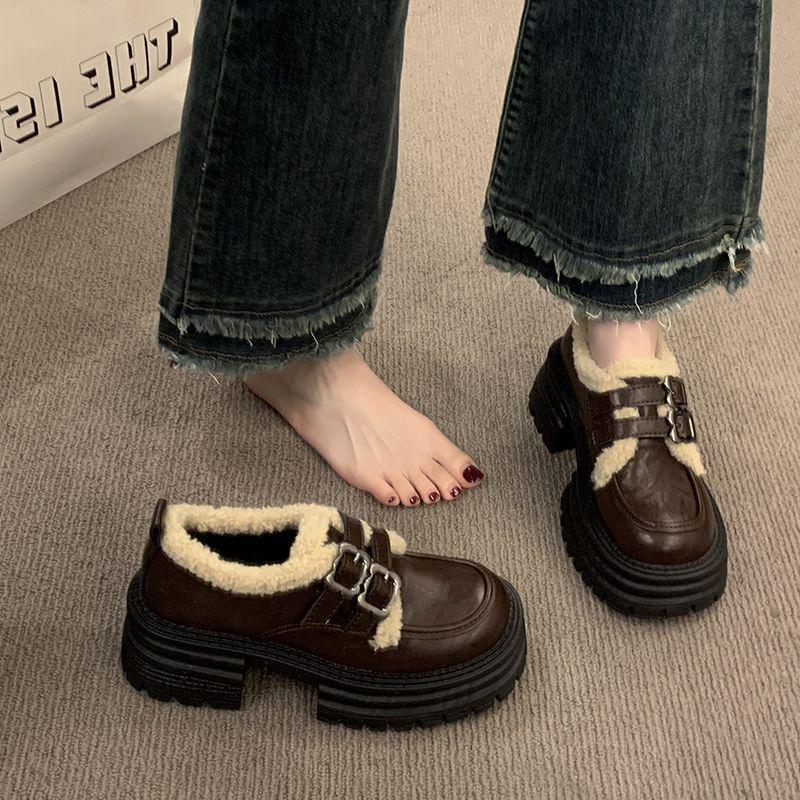 Schlüpfen Sie in Komfort und Stil mit diesen fleecegefütterten Loafern. Diese warmen Lederschuhe wurden mit einem Augenzwinkern auf die klassische britische Mode entworfen und verfügen über ein Doppelverschlussdetail und eine dicke Sohle für zusätzliche Strapazierfähigkeit und Komfort.. Das vielseitige Design macht sie perfekt für verschiedene Anlässe, während das plüschige Polyurethanfutter Ihre Füße warm hält.. Mit Polyurethanmaterialien durchgehend, vom Obermaterial und Futter bis zur Innensohle und Sohle, bieten diese Slipper eine schicke und praktische Ergänzung für jede Garderobe.