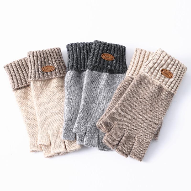 Cashmere Autumn and Winter New Men and Women Warm Driving Five Finger Split Finger Cold Proof Cycling Knitted Half Finger Gloves