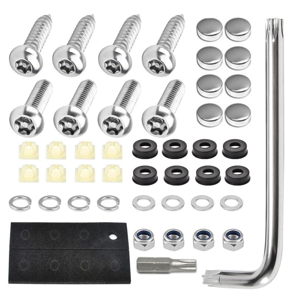Kennzeichenschrauben [54 Stück] Diebstahlsichere Schrauben, Sicherheitsschrauben, Edelstahl-Schraubenwerkzeuge, Kennzeichenschraubenzubehör für alle Modelle