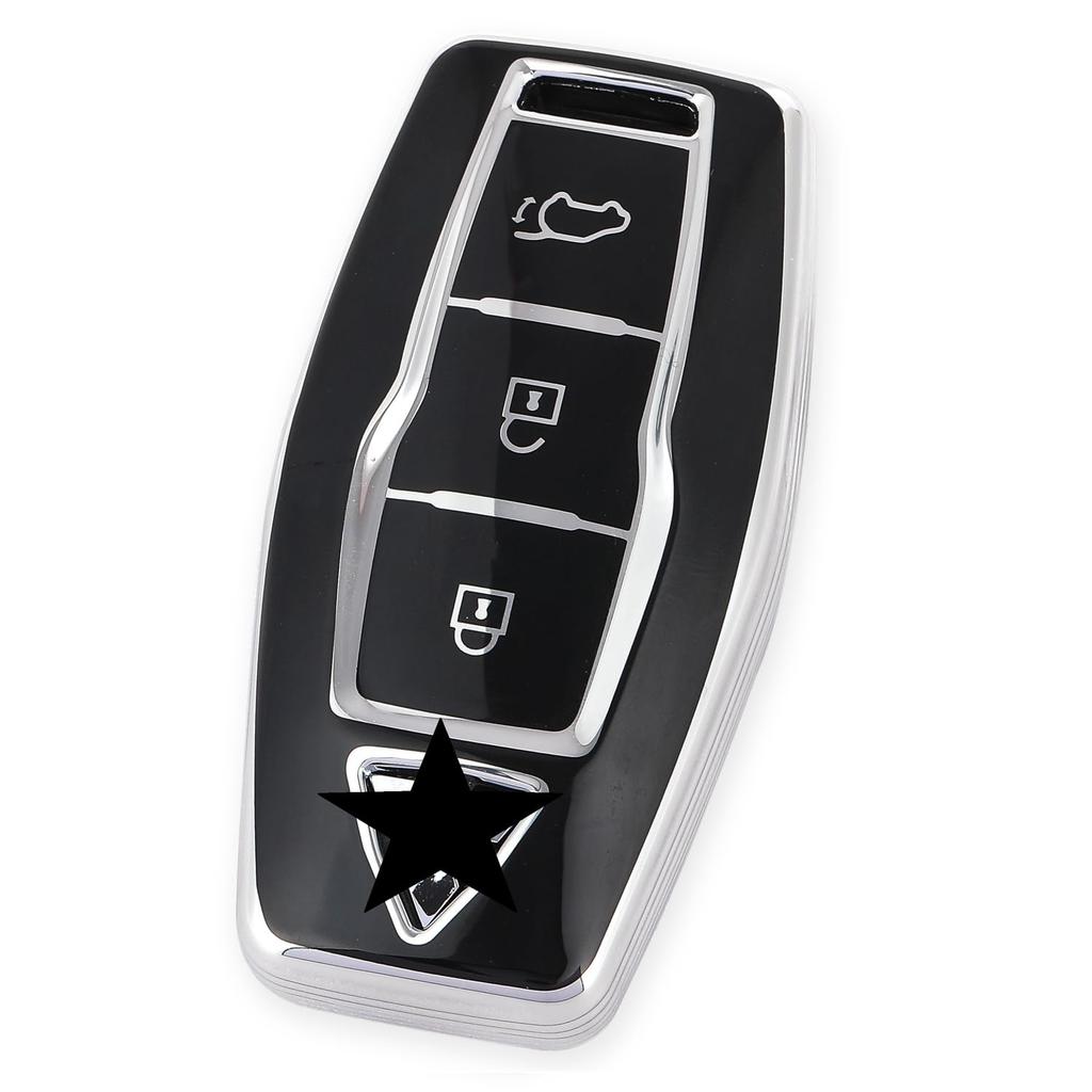 YANMW New Outlander Key Case Compatible with Mitsubishi OUTLANDER Key Cover New Outlander PHEV GN0W Smart Key Case (Silver Black)