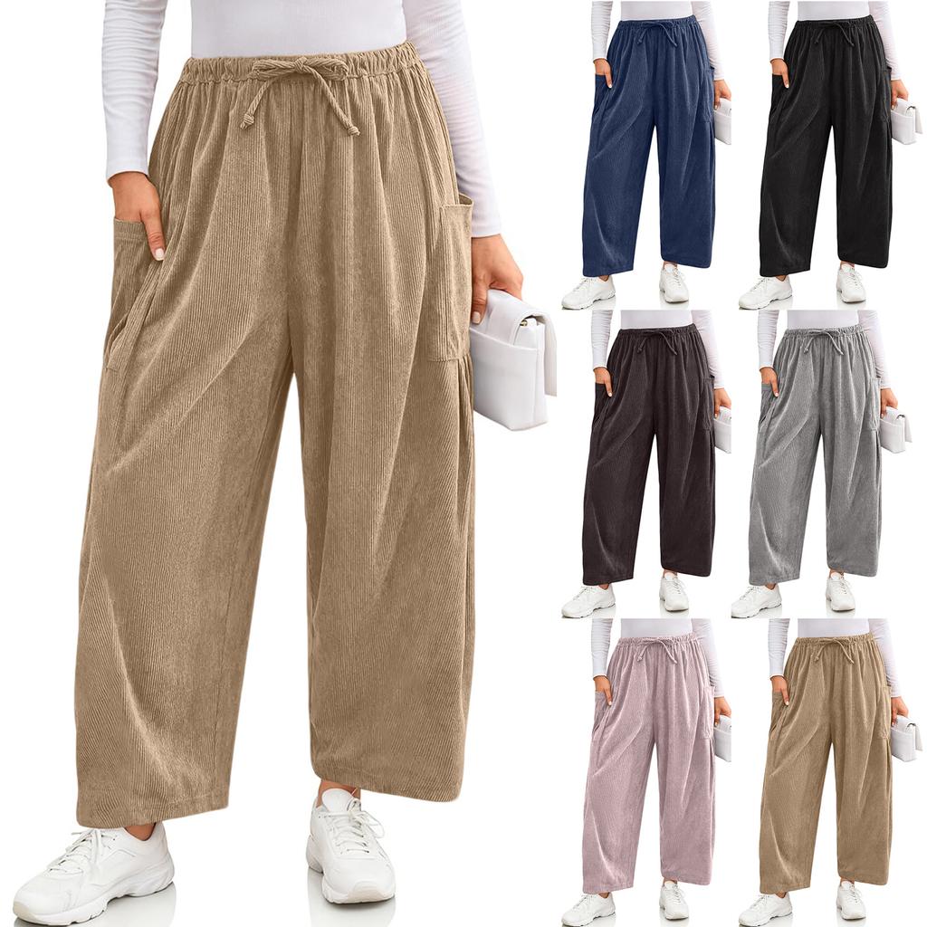 Damen Cordhose Lässig Locker Einfarbig Weites Bein Weite Version Mit Taschen