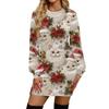 Damenmode Lässig Weihnachts-Print Rundhals Langarm Kleid