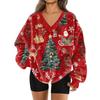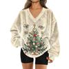Damenmode Lässig Langarm Weihnachten Bedruckt V-Ausschnitt Oberteil Sweatshirt