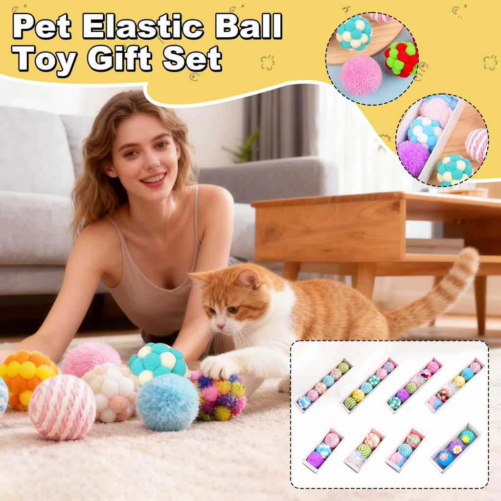 Handgemachte Plüschglöckchenkugel Katzenspielzeug Elastische Kugel Geschenkbox-Set, Selbsterhaltende Kugel für Katzen, Kratzfest und -beständig