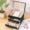 Kompakte Schmuckschatulle aus Leder mit Schloss für Ohrringe und Ohrstecker