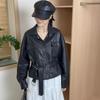 Revers Einreihige Kurze Jacke für Damen Locker zum Schnüren in der Taille Jacke Oberteil