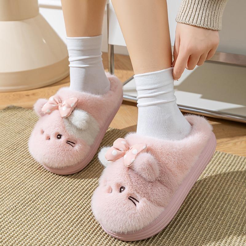 Neue Cartoon-Katze Baumwollpantoffeln für drinnen, Haushalt, Plüschpantoffeln, rutschfest, warm, Hausbaumwollpantoffeln